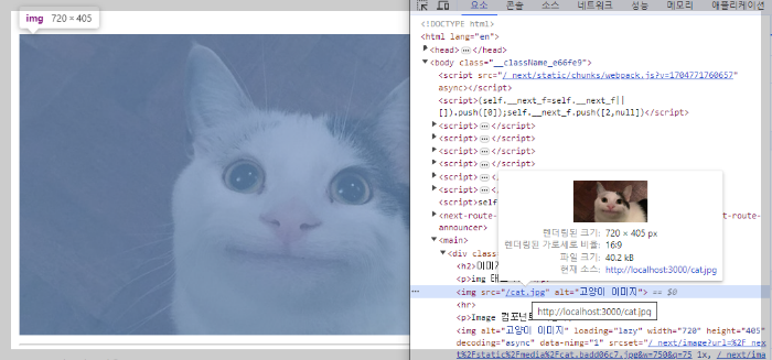 <img src="/cat.jpg" alt="고양이 이미지" />