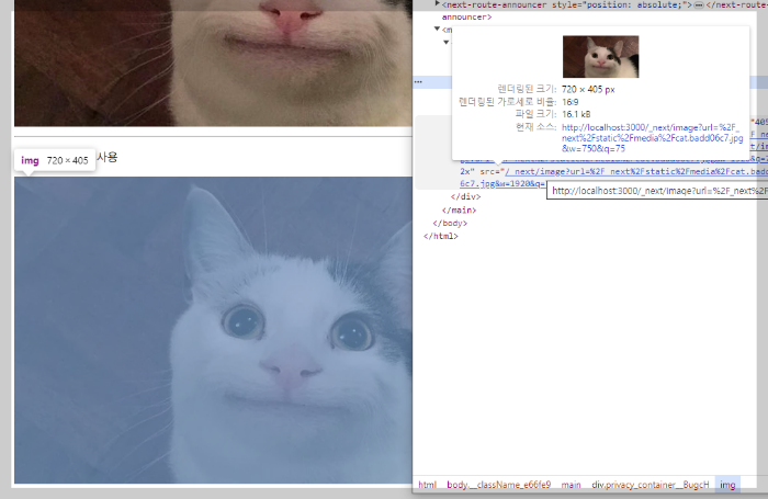 Image 컴포넌트를 사용한 이미지 파일 크기는 16.1kB 인 것을 확인할 수 있습니다.