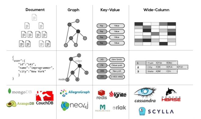 NoSQL은 다양한 형태(4가지)의 저장 기술을 지원합니다.