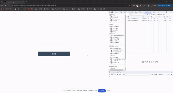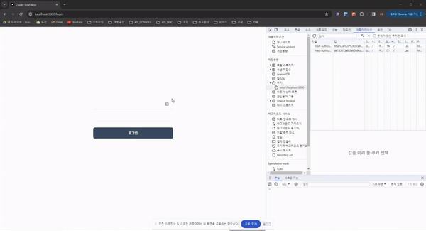 로그인 후에 쿠키값(next-auth.session-token)이 추가되는 것을 확인할 수 있습니다.