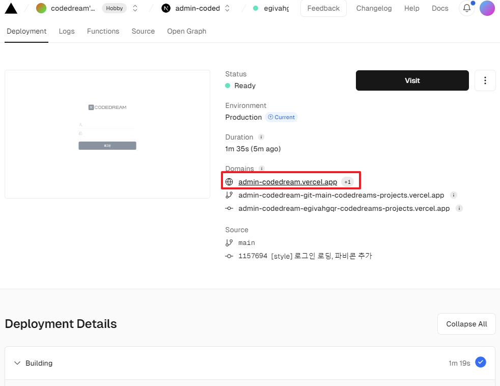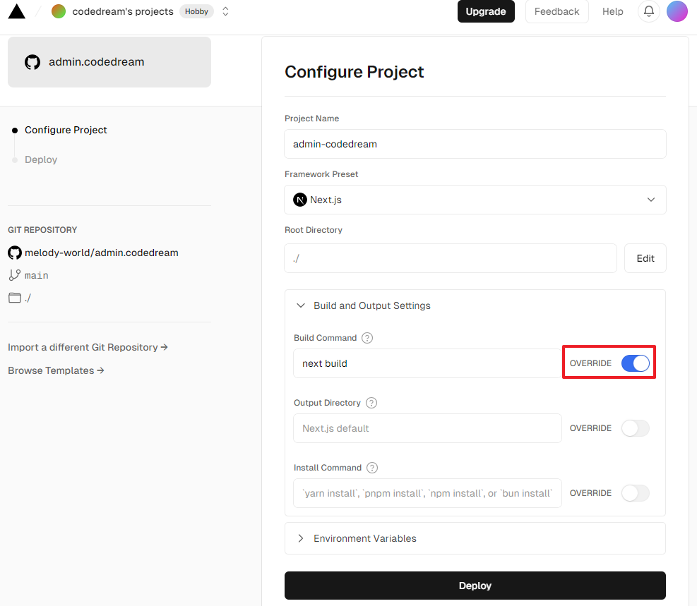 코드드림 어드민은 Next.js로 개발한만큼 Vercel을 이용해 배포하기로 했습니다. Next.js를 Vercel사에서 만들기도 했고, 배포 또한 매우 쉽다고 하니 고민할 필요도 없었습니다.