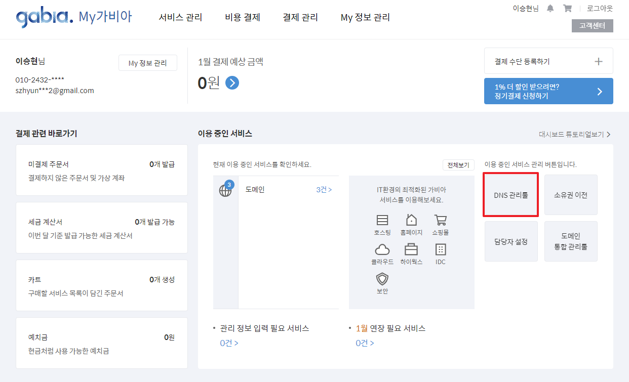 여기서 우리는 가비아를 통해 구매한 도메인을 적용해봤습니다.