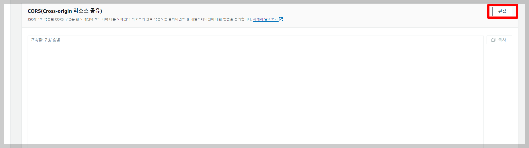 다음으로 CORS(Cross-origin 리소스 공유) 설정을 추가해 줍시다.