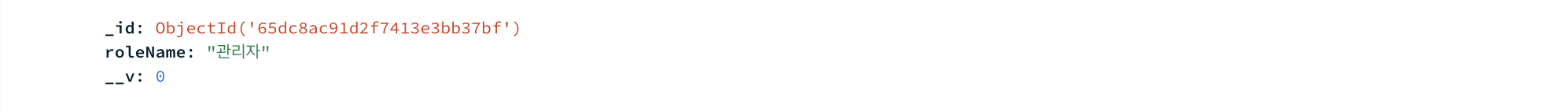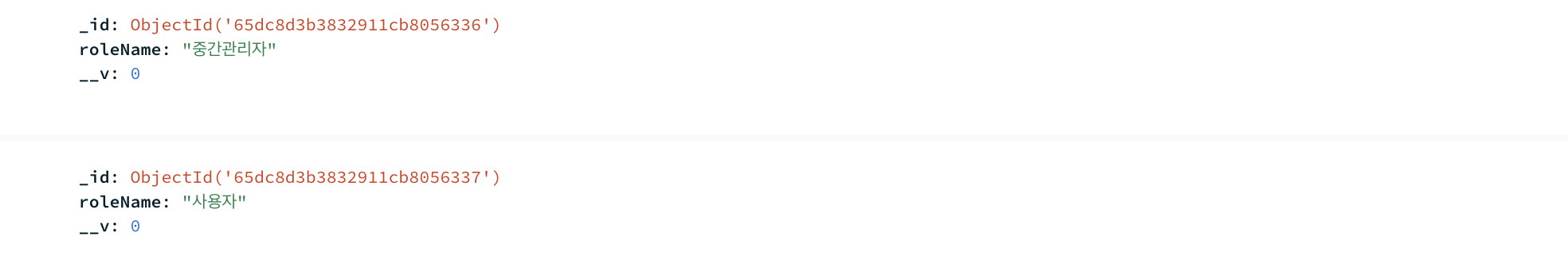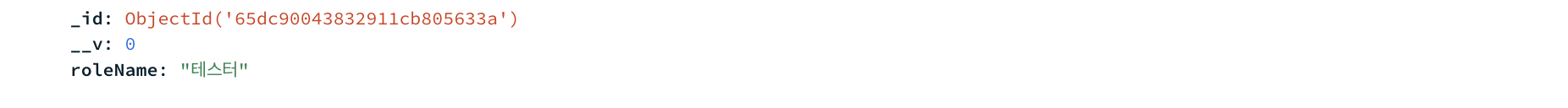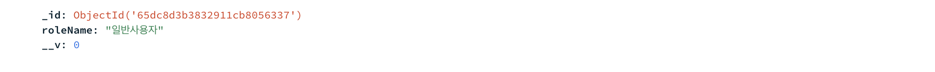조인의 기준이 되는 필드는 roleCode라는 필드입니다. users 컬렉션에서는 roles 컬렉션의 _id를 String 형태로 저장했습니다.