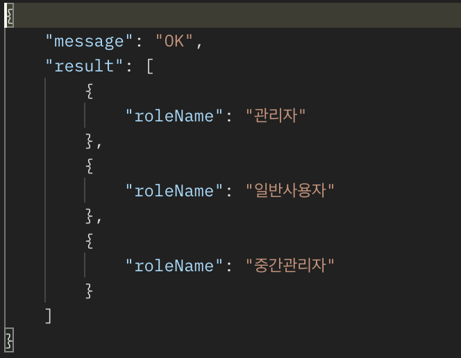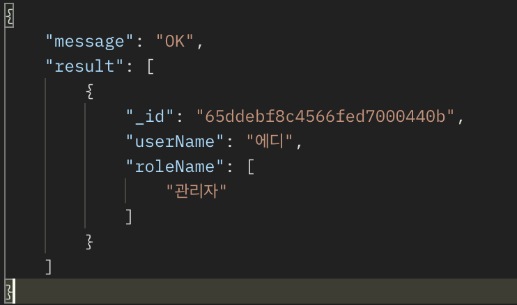 // 역할명이 관리자인 데이터 조회 (좌)