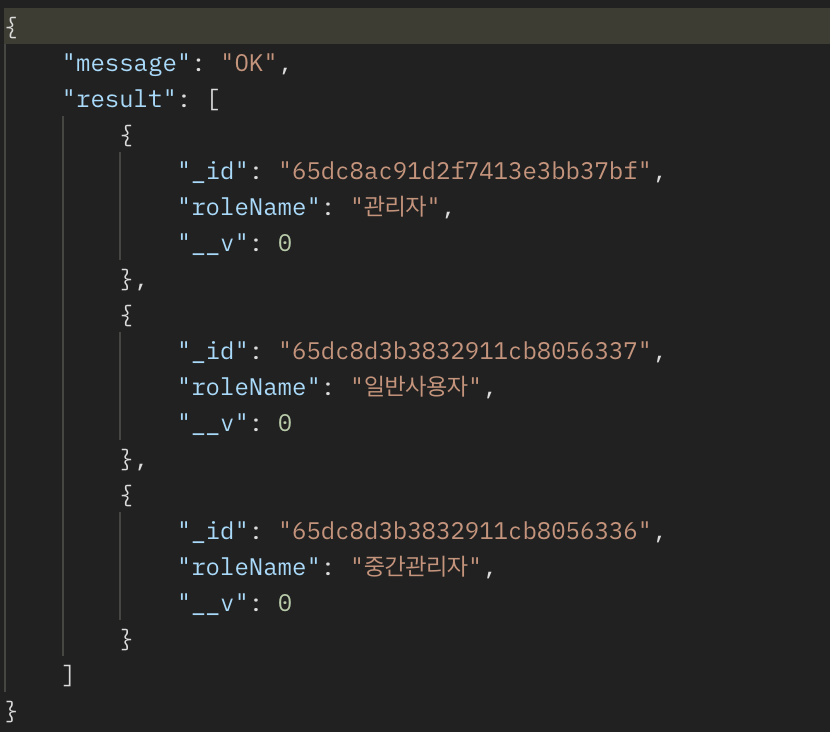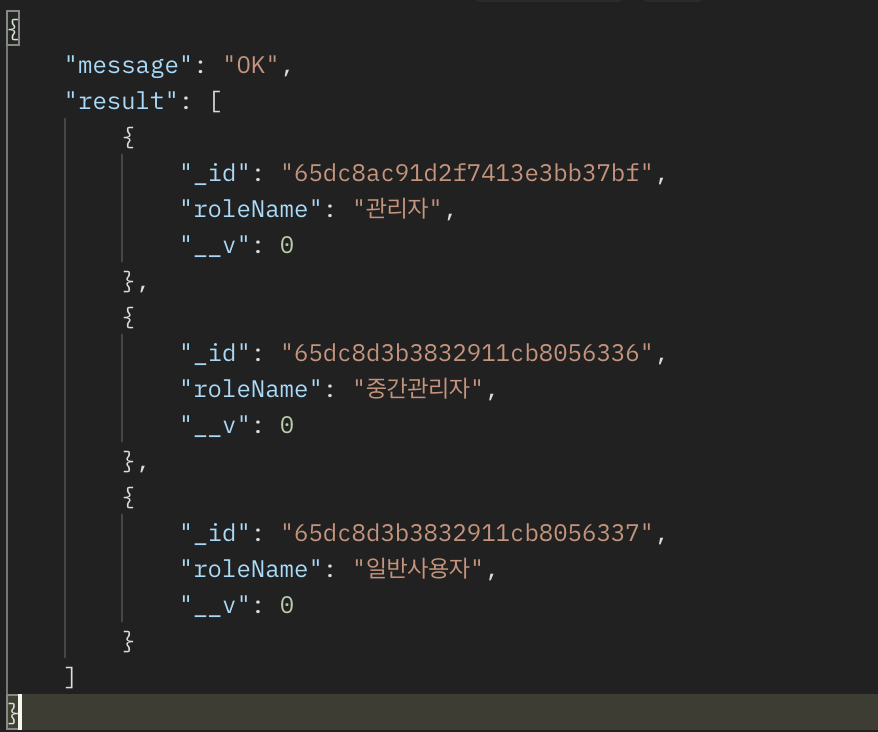 먼저 roles 컬렉션에 데이터를 삽입해보겠습니다.
