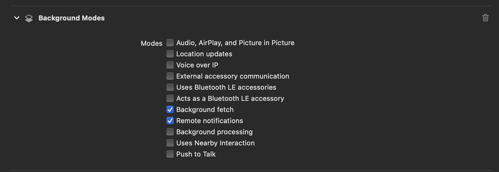 3-2) Background Modes에 Background fetch/Remote notifications 추가