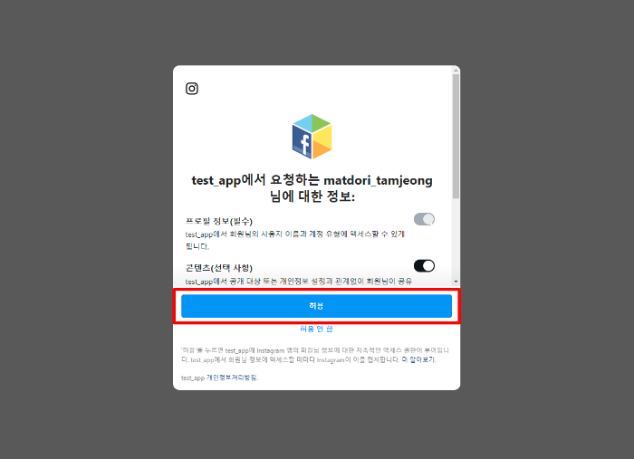 | client_id | 앱 대시보드 > 제품> Instagram Basic Display > 기본 표시 > Instagram 앱 ID | ![]() |