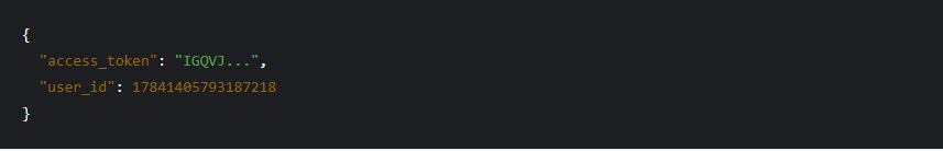 응답이 성공하면 아래 사진과 같이 API는 액세스 토큰과 사용자 ID를 포함한 JSON을 반환합니다.