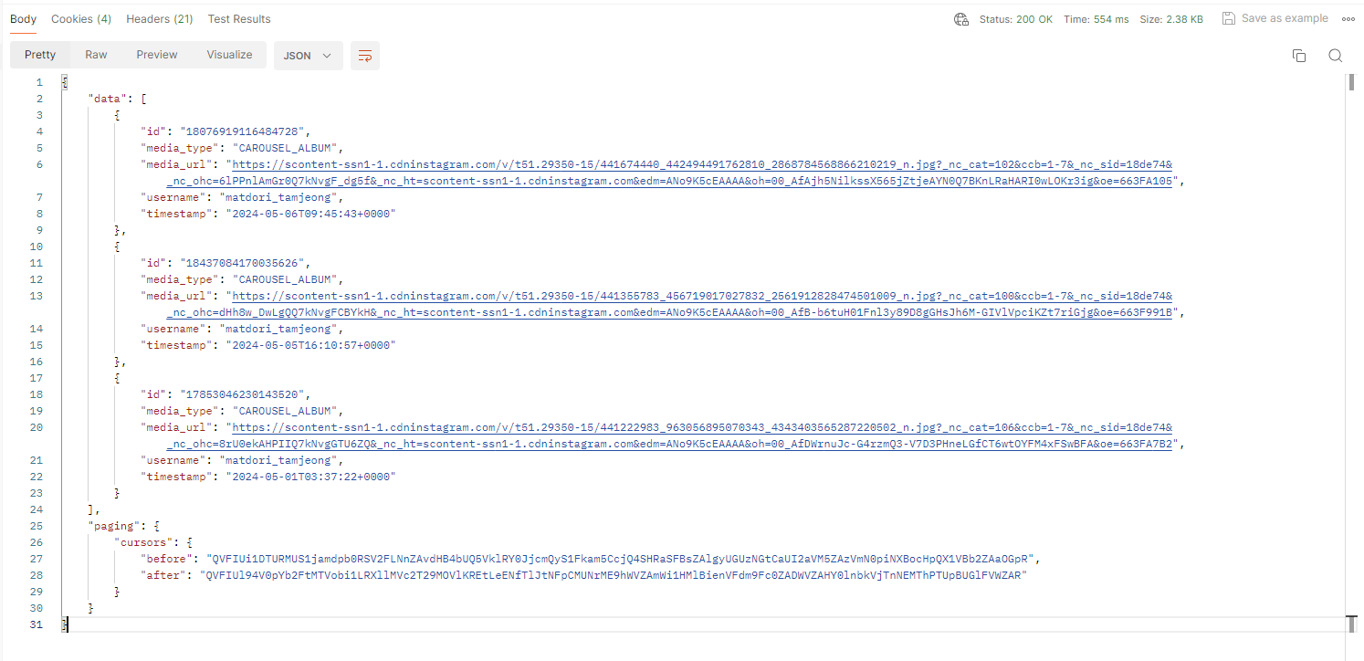이제 인스타그램에 등록된 미디어를 가져올 수 있습니다.