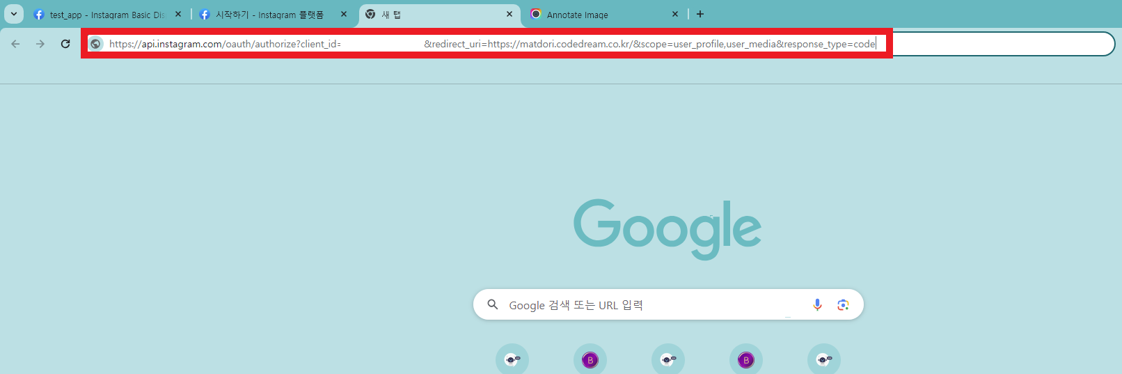 그리고 해당 내용을 바탕으로 인증 창의 URL을 구성해 봅니다.
