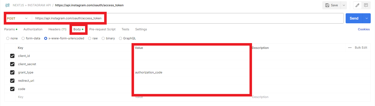 - POST URL : https://api.instagram.com/oauth/access_token