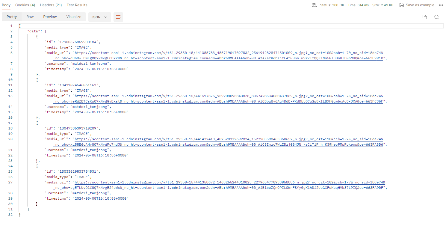 이제 인스타그램에 등록된 미디어를 가져올 수 있습니다.