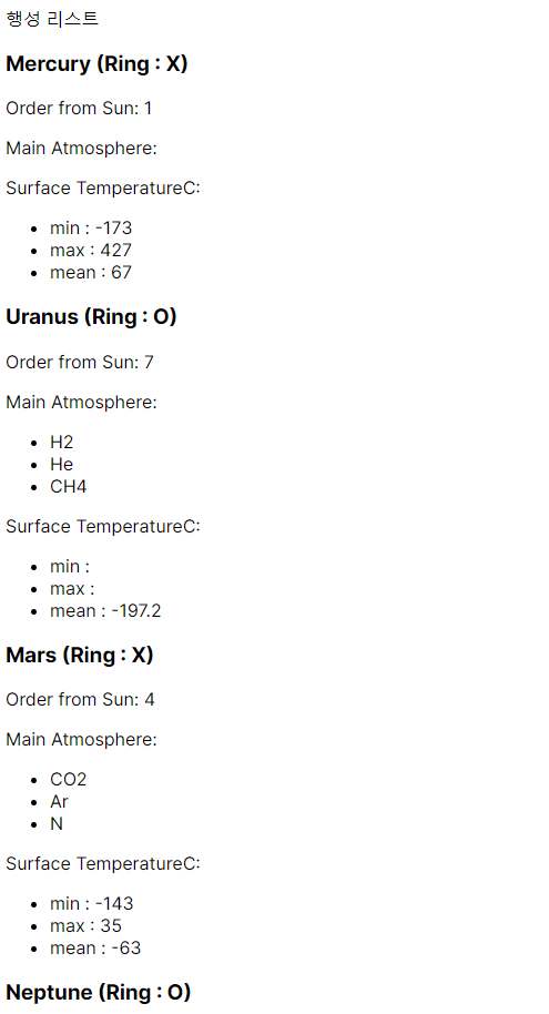 db를 통해 데이터를 조회하기 때문에 await dbConnect()를 통해 db 연결이 보장되어야 합니다. 이후에 생성한 Planet 모델을 통해 데이터를 불러옵니다.