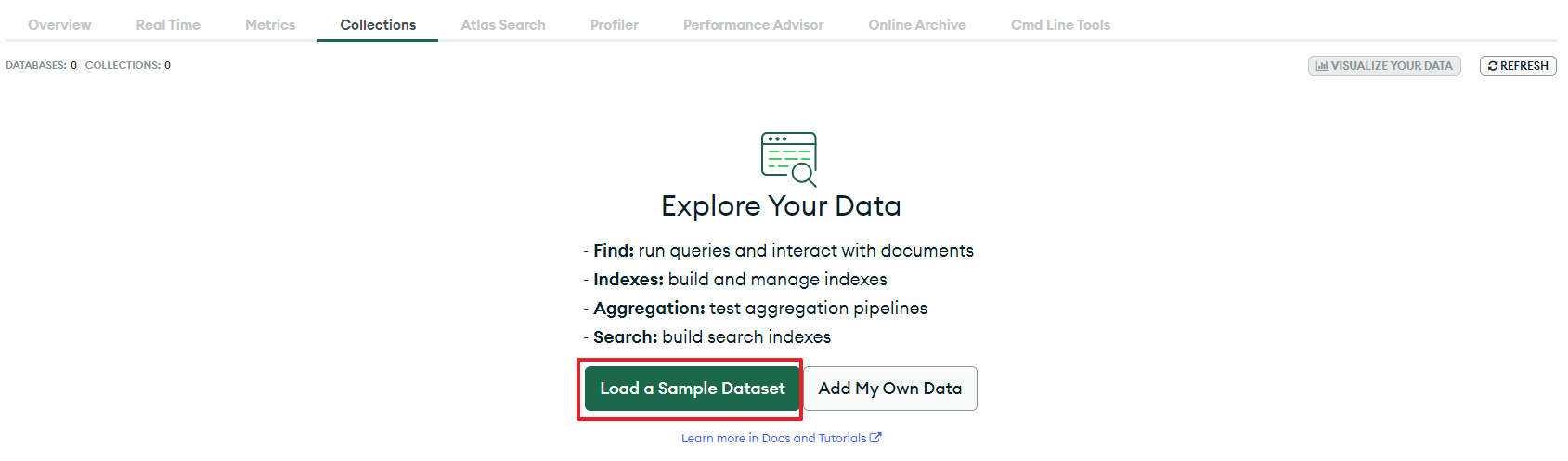 몇 분 후 좌측 탭에 샘플 데이터베이스가 생성됩니다.