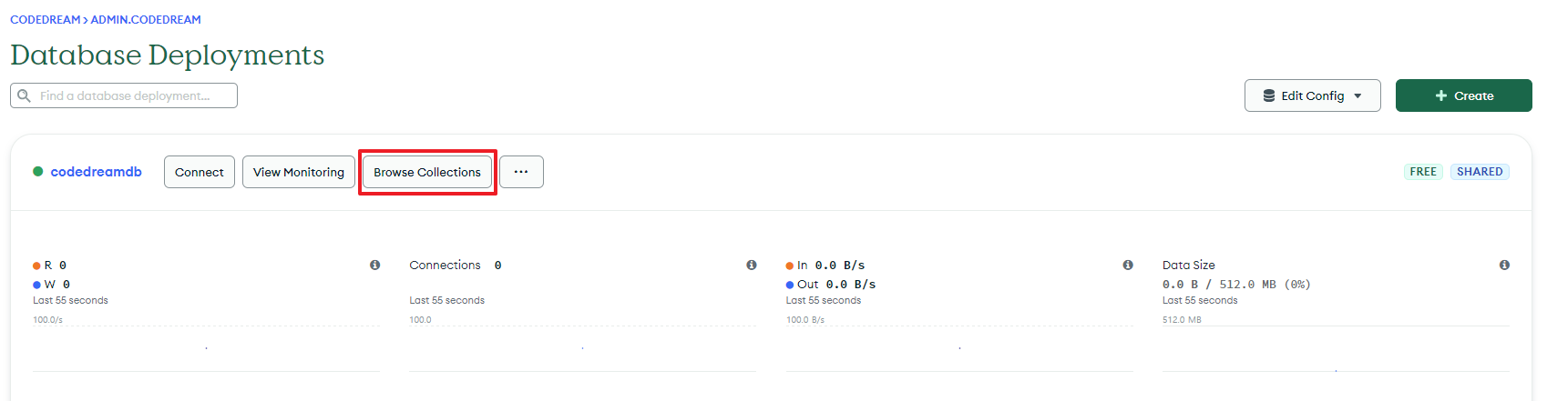 DEPLOYMENT - Database 클릭 후 Browse Collections를 클릭합니다.