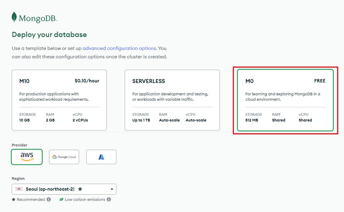 우리는 무료를 사용할 것이기 때문에 맨 우측에 있는 M0를 선택합니다.