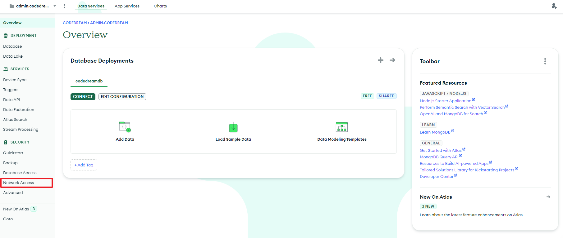CODEDREAMDB_URI=mongodb+srv://codedream:패스워드입력@DB클러스터명.semt1bz.mongodb.net/데이터베이스명?retryWrites=true&w=majority